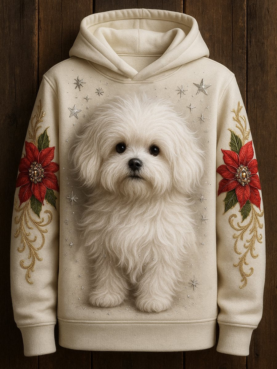 Красива куче арт принт Casual дълъг ръкав пуловер за жени