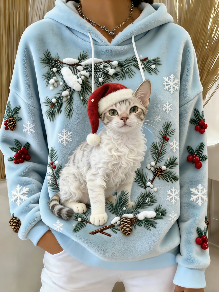 Ретро дамски суитшърт с качулка и животински принт от комфортна фланела