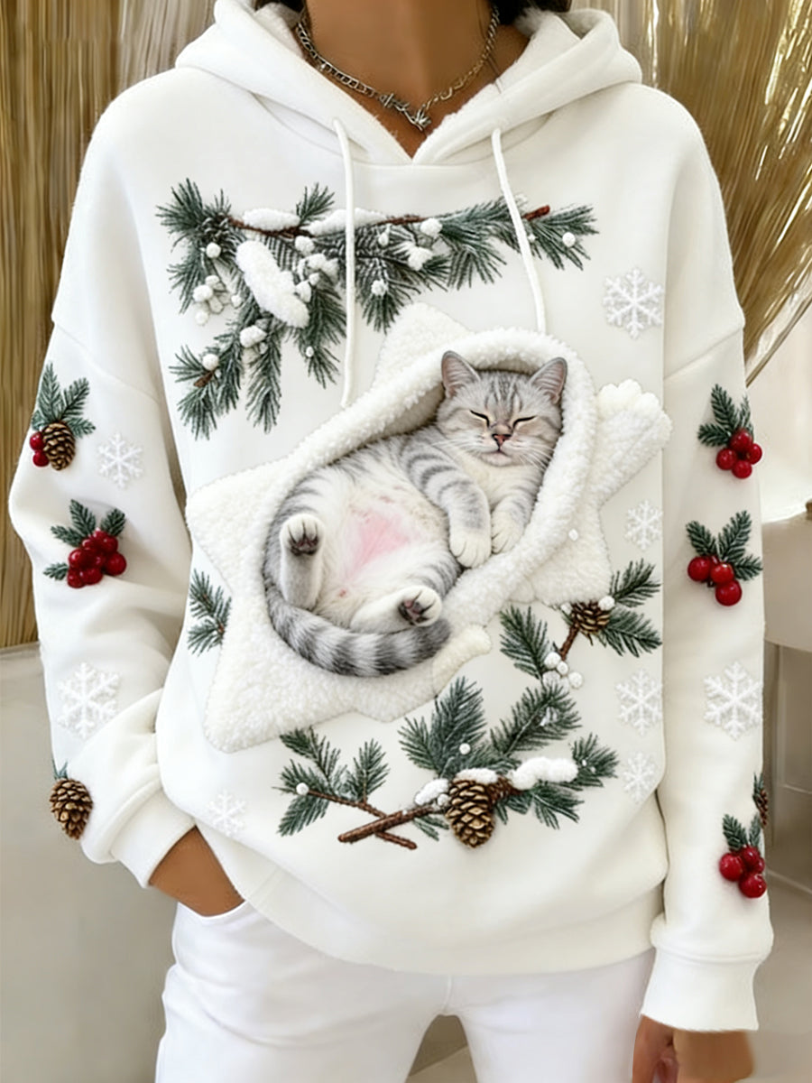 Ретро женски суитшърт с качулка от фланела с животински принт