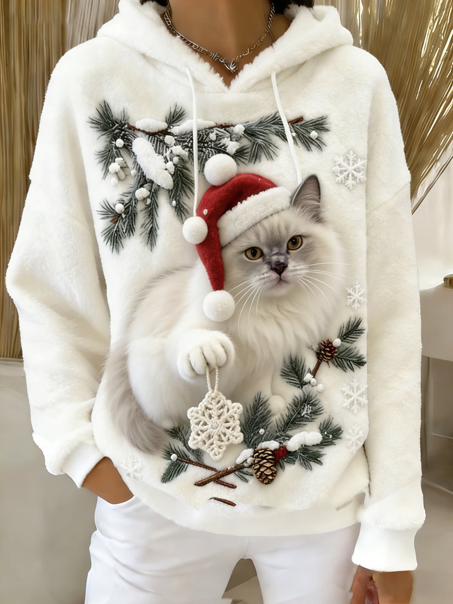 Ретро женски суитшърт с качулка от фланела с животински принт